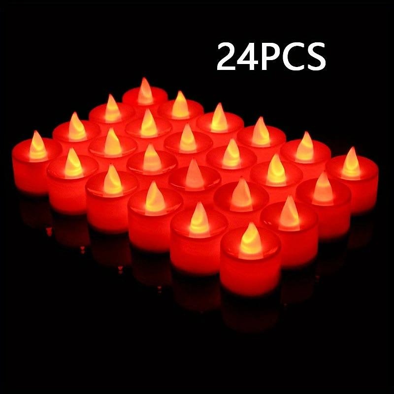 24/50pcs LED Electronic Candle Lamp, Round White Shell Nightlight, Small LED Light, For Valentine's Day, Christmas, Various Holiday Decoration 28