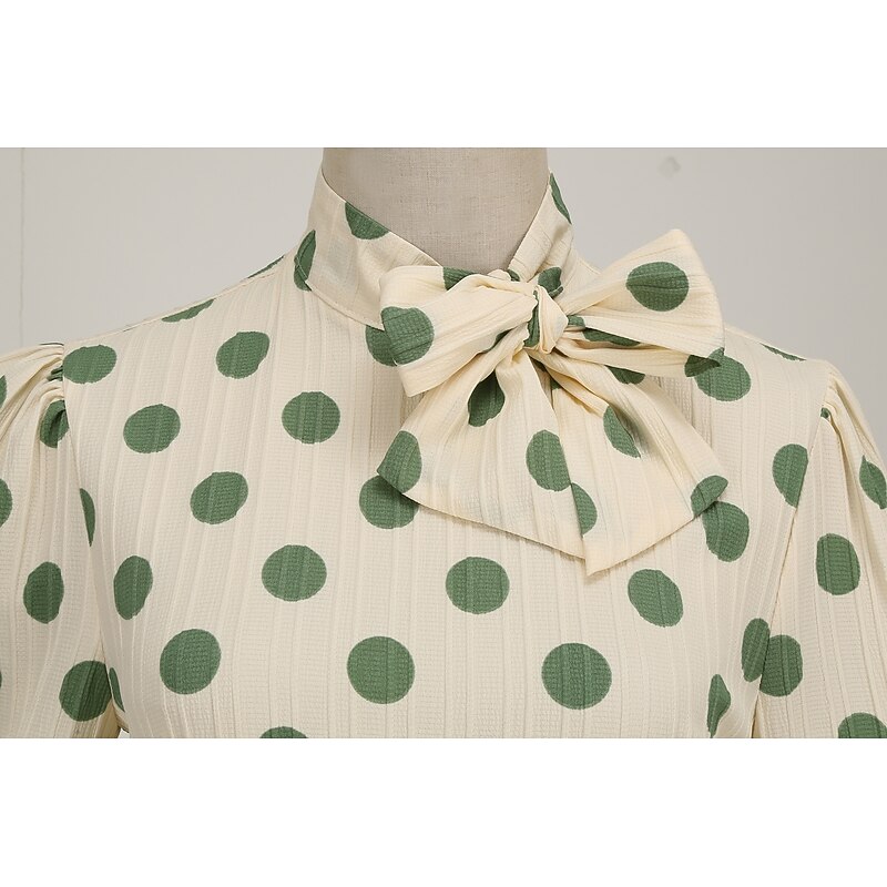 Polka Dots Retro Vintage 1950s Grease Outfits Vacation Dress Flare Dress Women's Costume Vintage Cosplay Daily Wear Long Sleeve Dress Carnival 10