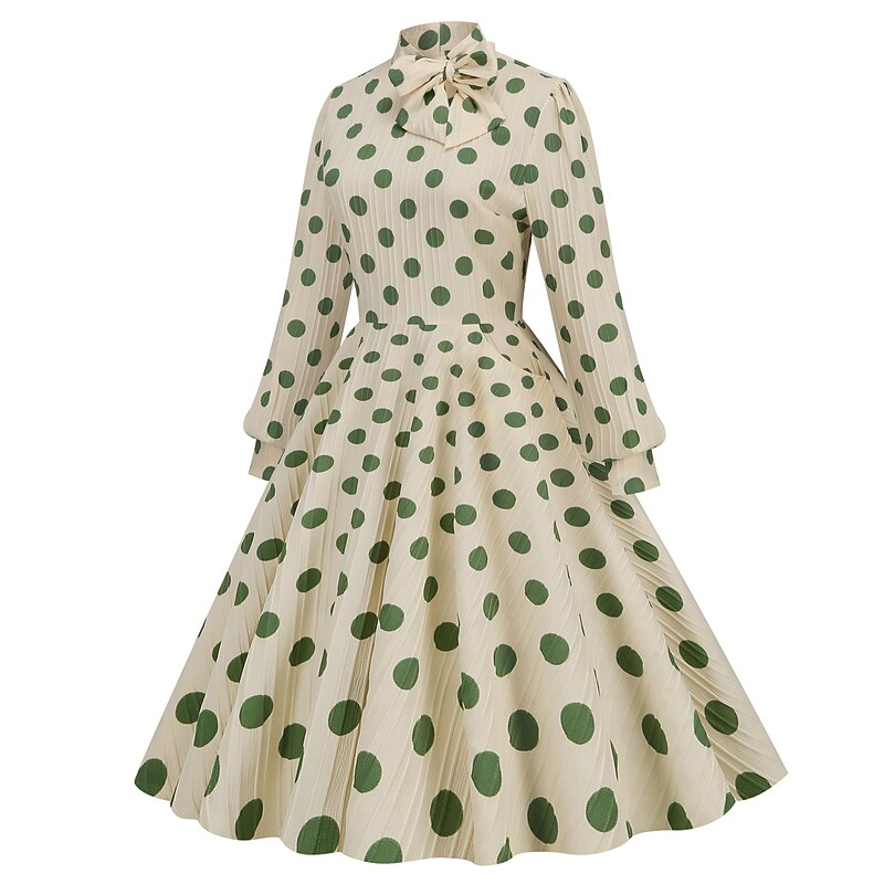 HOT ! Polka Dots Retro Vintage 1950s Grease Outfits Vacation Dress Flare Dress Women's Costume Vintage Cosplay Daily Wear Long Sleeve Dress Carnival
