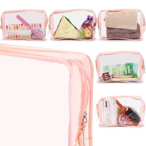 Tbestmax 4 Packs Cosmetic Bags Clear Makeup Bags Portable Travel Toiletry Bags Waterproof Cosmetic Organizer Pink(2M + 2L) 3