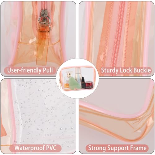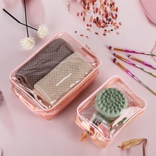 Tbestmax 4 Packs Cosmetic Bags Clear Makeup Bags Portable Travel Toiletry Bags Waterproof Cosmetic Organizer Pink(2M + 2L) 7