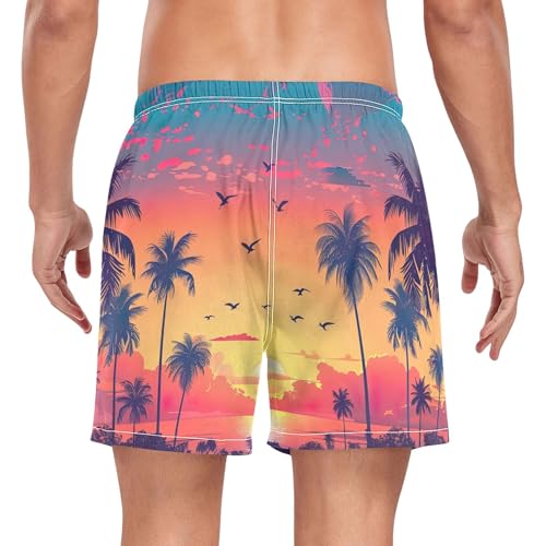 HOT ! xigua Sunset with Palm Trees Mens Swim Trunks with Liner, 5 inch Quick Dry Mens Boardshorts for Beach