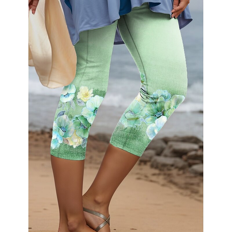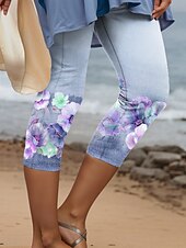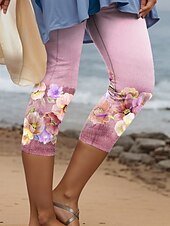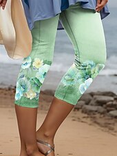 More information about Women's Leggings Capri Pants High Elasticity Vacation Vintage Fashion Calf-Length High Waist Floral Graphic Printing Thermal Warm Breathable Soft Stretchy Outdoor Daily Pink Blue Purple Green Summer