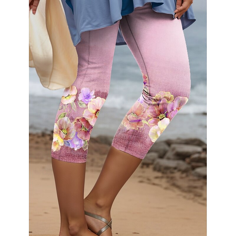 Women's Leggings Capri Pants High Elasticity Vacation Vintage Fashion Calf-Length High Waist Floral Graphic Printing Thermal Warm Breathable Soft Stretchy Outdoor Daily Pink Blue Purple Green Summer 1