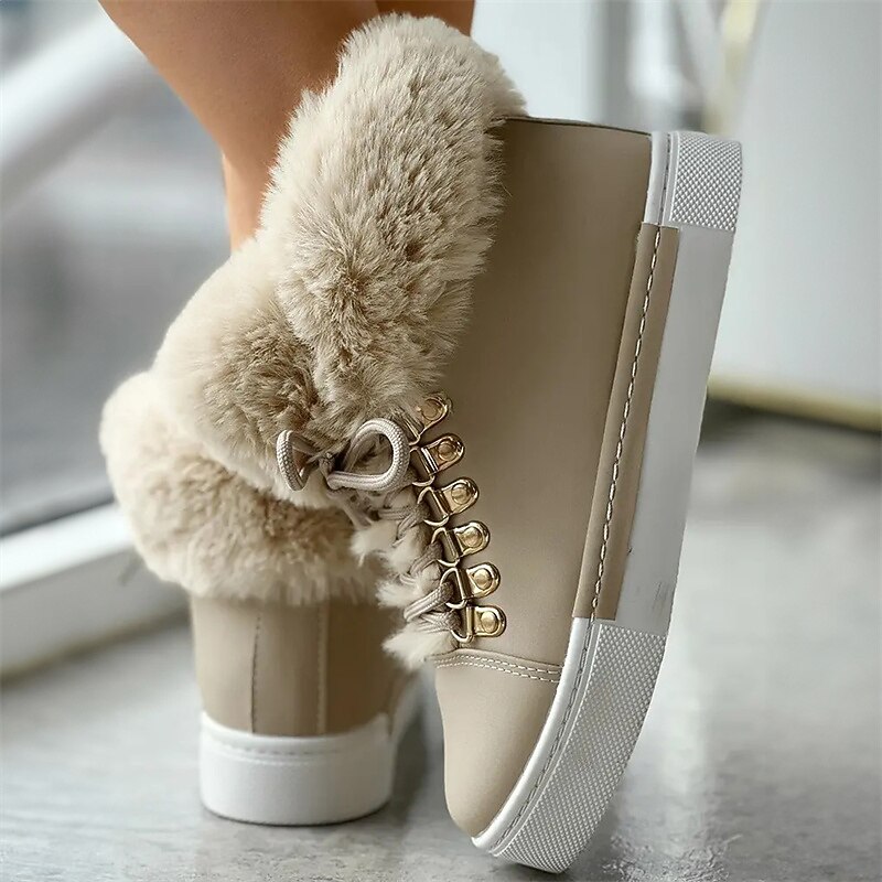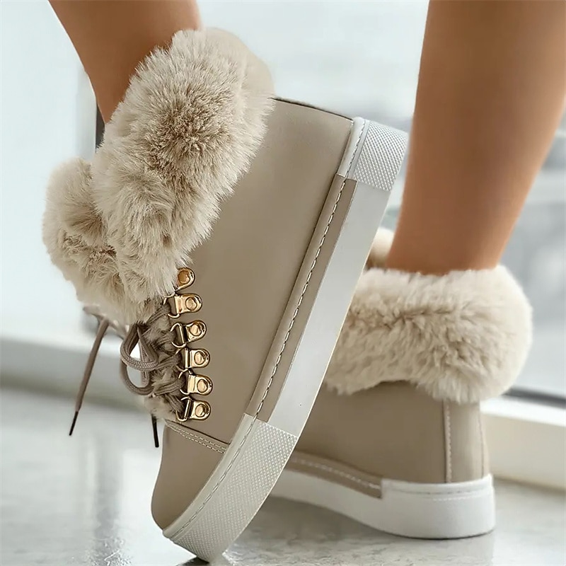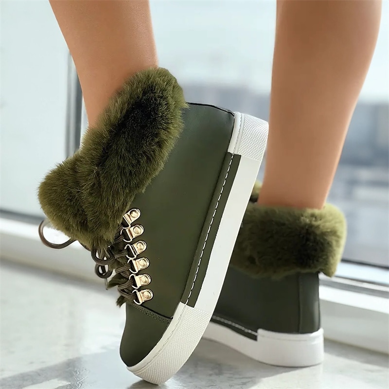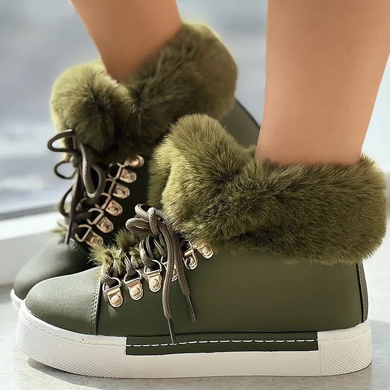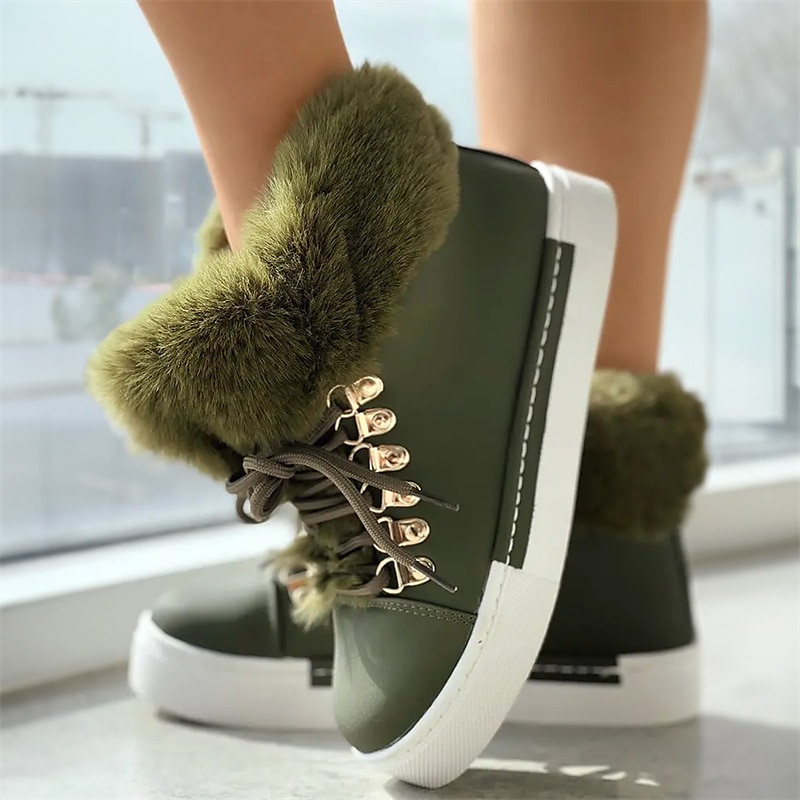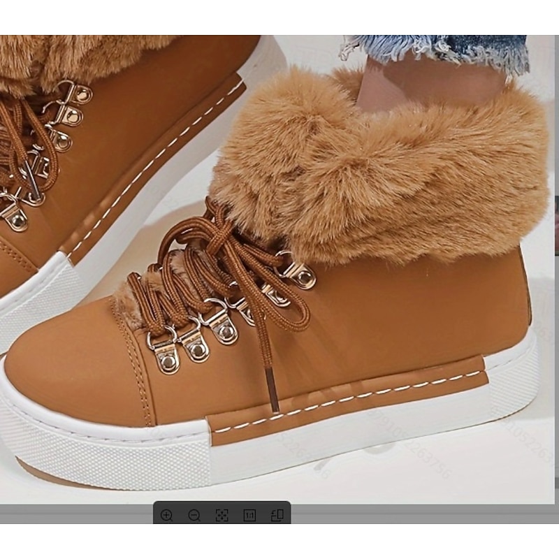 Highlights [Fabric] Crafted with a stylish faux leather exterior and a soft, fluffy pink faux fur lining, these women's high-top sneakers provide both warmth and style, ideal for the colder seasons. [Fit] Featuring a high-top design, these sneakers offer a snug and cozy fit, perfect for keeping your feet warm during fall and winter outings. [Design Highlights] The sneakers are equipped with durable metal eyelets and matching laces that add a touch of elegance and robustness. The white rubber sole not only offers excellent grip but also complements the charming pink exterior for a fashionable look. [Occasions] Perfect for daily wear and outdoor activities, these sneakers are a versatile addition to your winter wardrobe. Whether you're heading out for a casual day or exploring the outdoors, these shoes ensure comfort and style. [Size] Available in a range of sizes from US6 to US10.5, these sneakers are designed to fit various foot sizes, offering a comfortable and precise fit for different preferences.