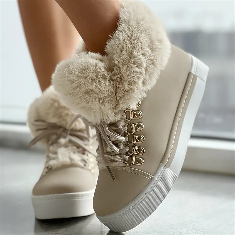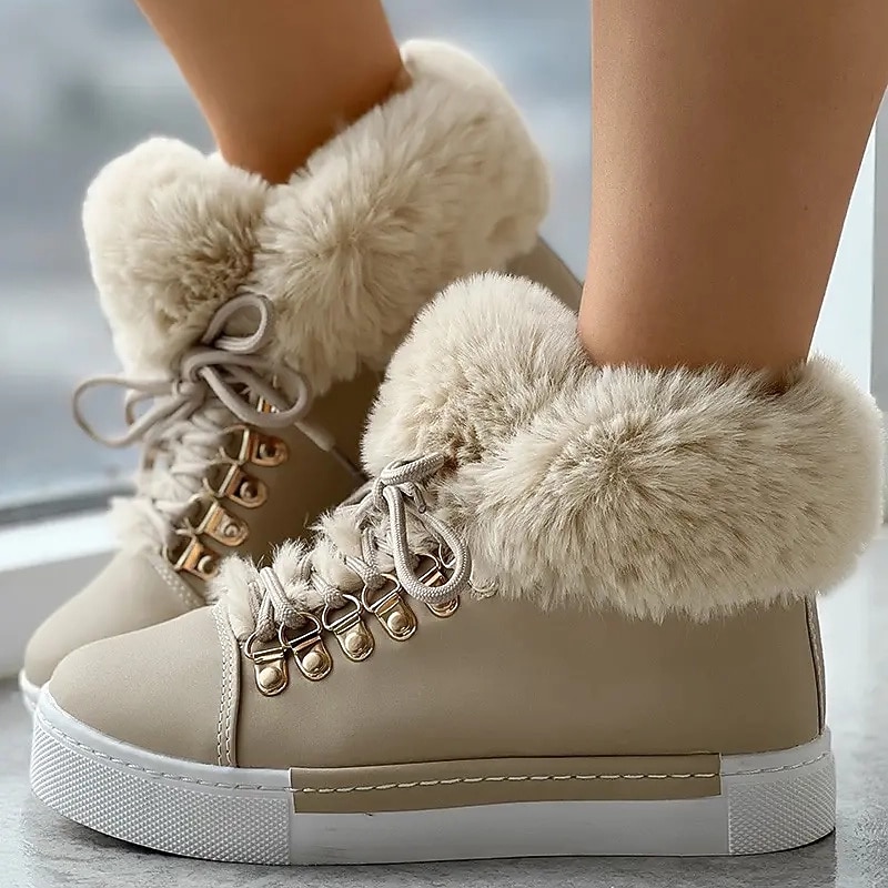 More information about Women's Pink Faux Fur Lined High-Top Sneakers - Warm and Cozy Winter Casual Shoes