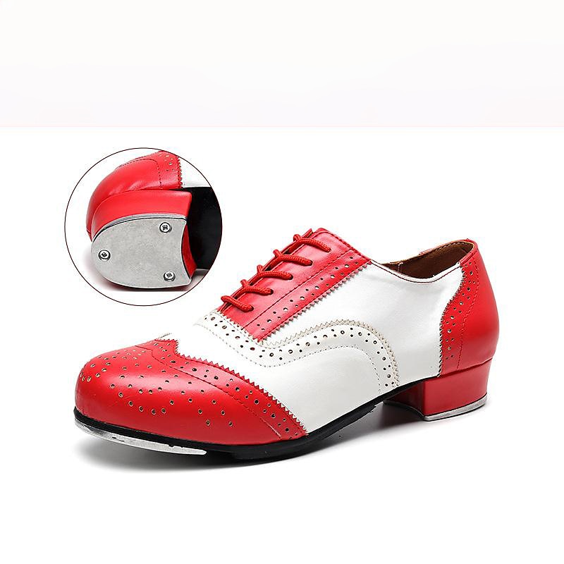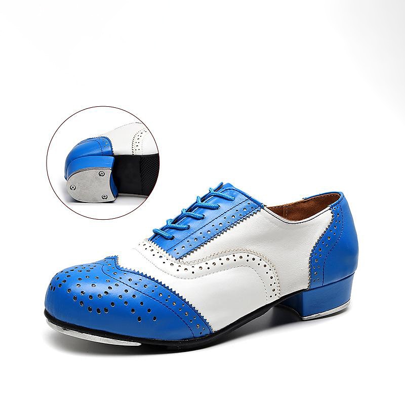HOT ! Men's Black and White Oxford Tap Dance Shoes – Classic Faux Leather Lace-Up Shoes with Metal Plates for Professional Performances