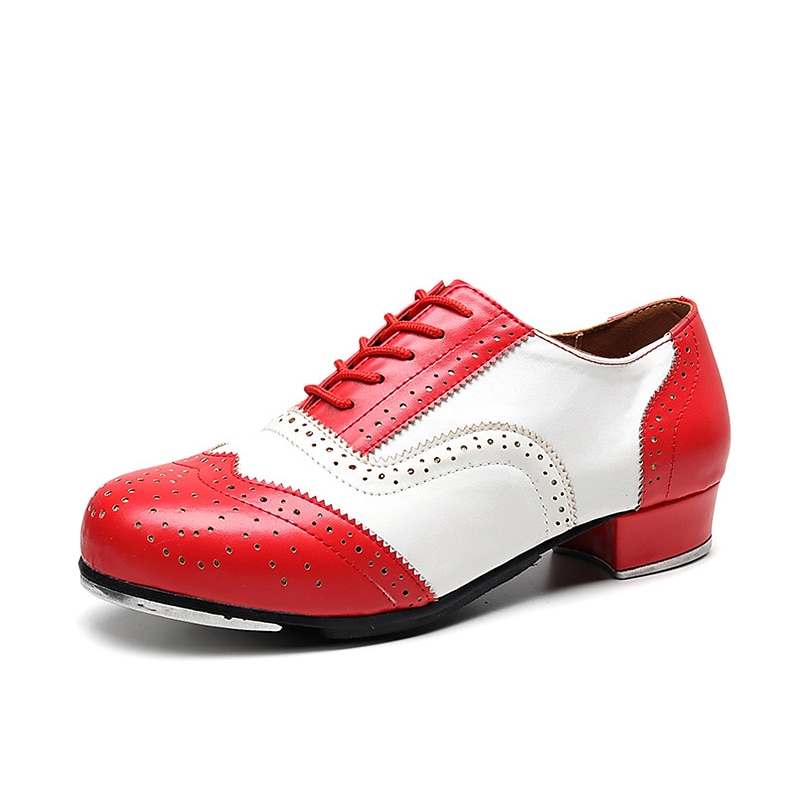 More information about Men's Black and White Oxford Tap Dance Shoes – Classic Faux Leather Lace-Up Shoes with Metal Plates for Professional Performances