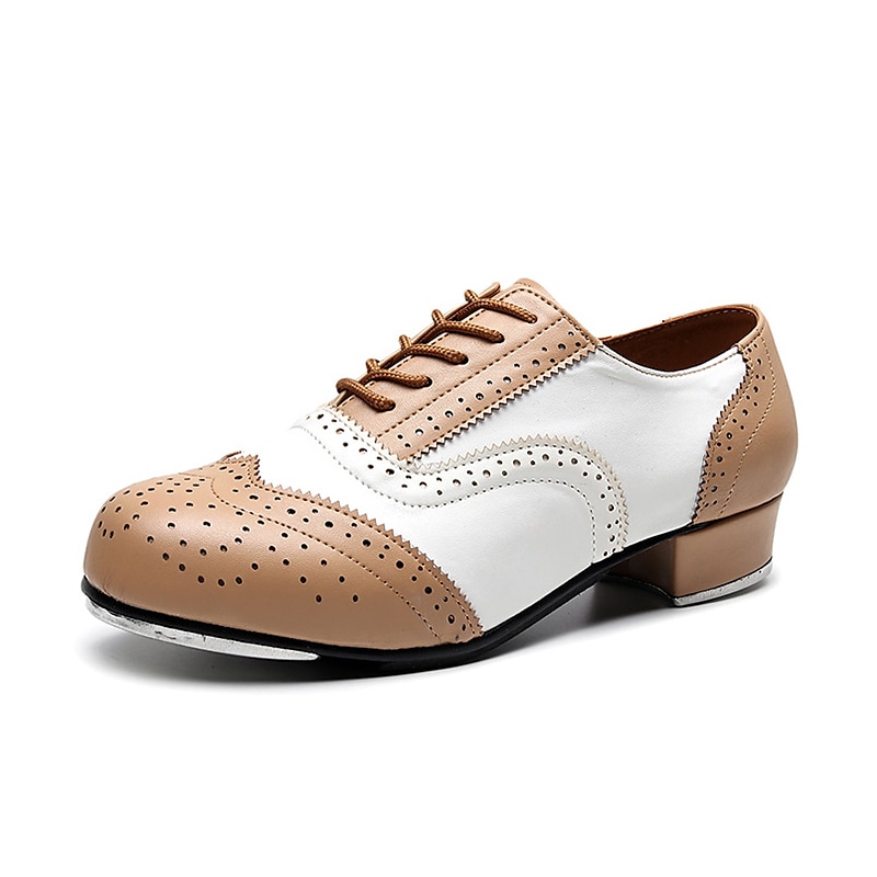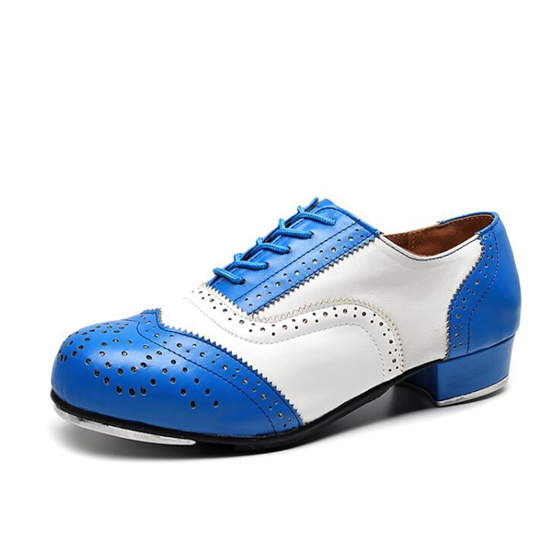 Men's Black and White Oxford Tap Dance Shoes – Classic Faux Leather Lace-Up Shoes with Metal Plates for Professional Performances 1
