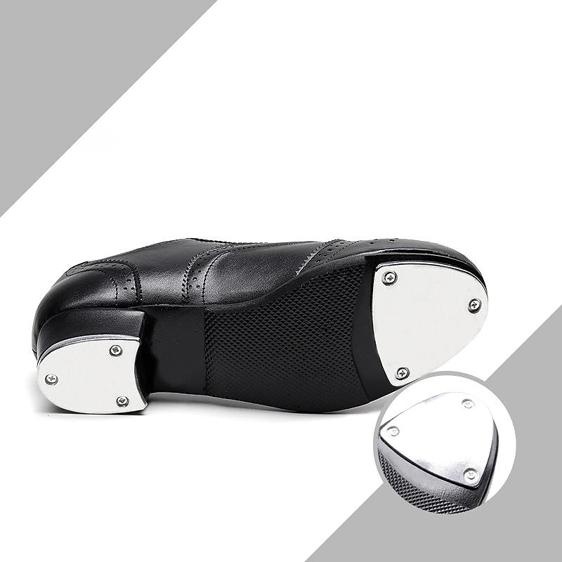 Men's Black and White Oxford Tap Dance Shoes – Classic Faux Leather Lace-Up Shoes with Metal Plates for Professional Performances 4