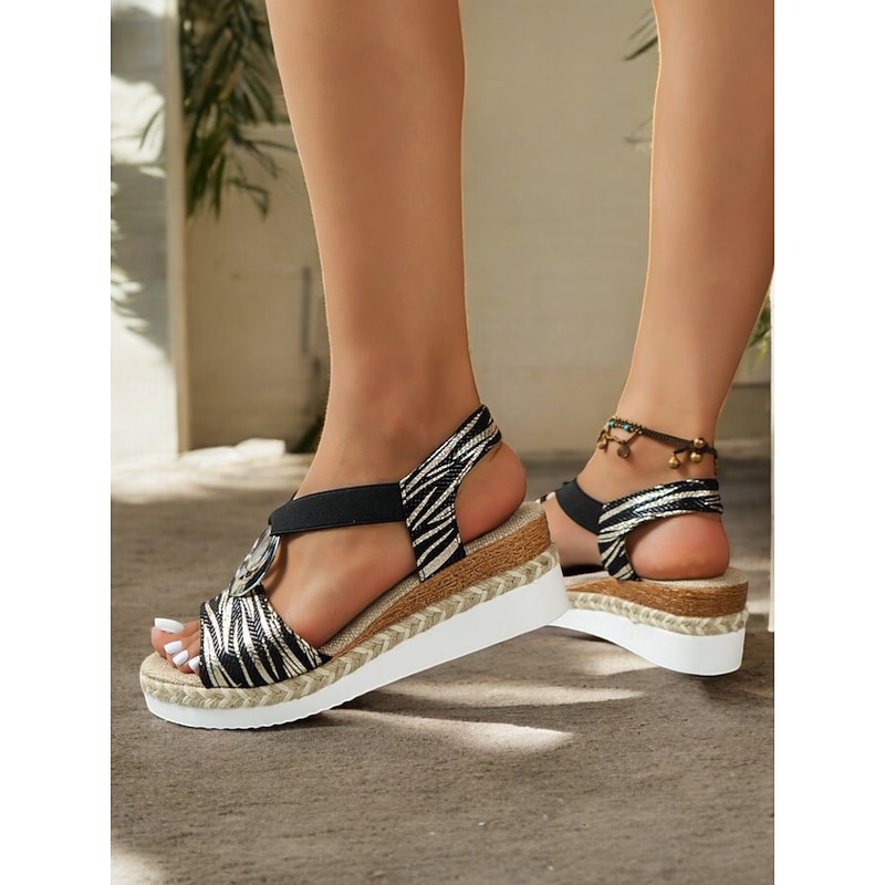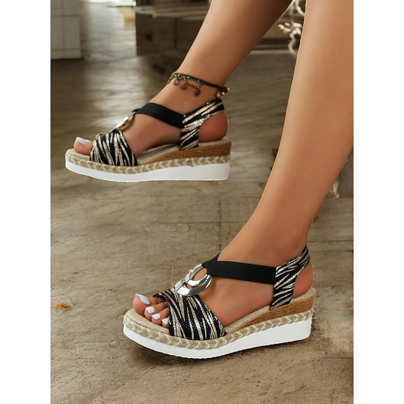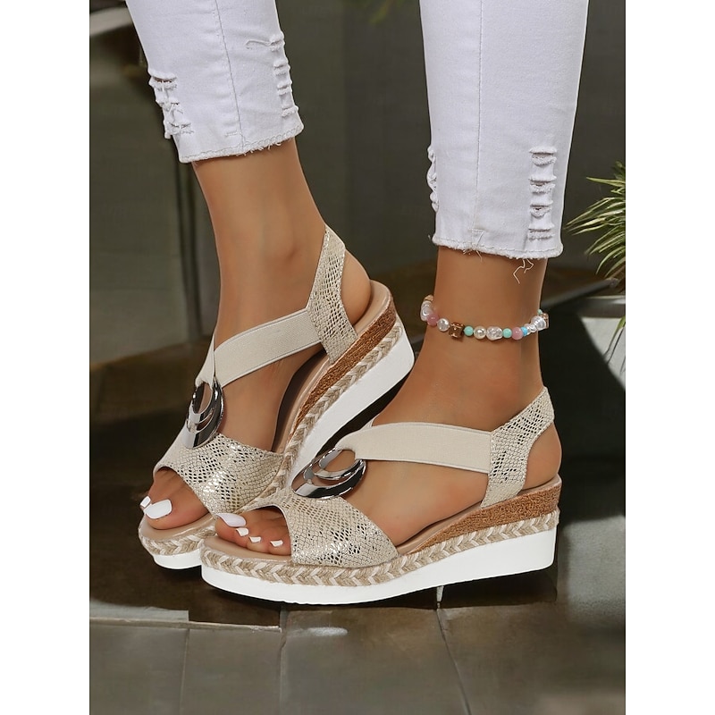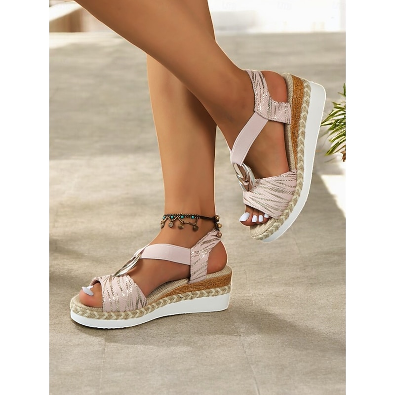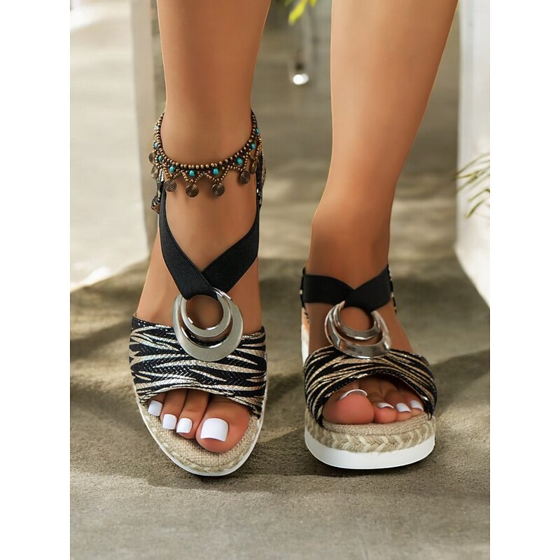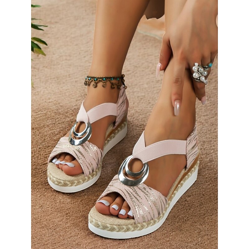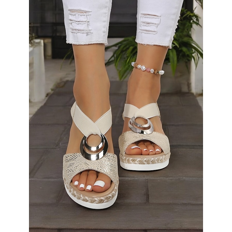 Women's Boho Espadrille Wedge Sandals with Metallic Ring Detail - Strappy Summer Shoes for Casual and Beachwear 24