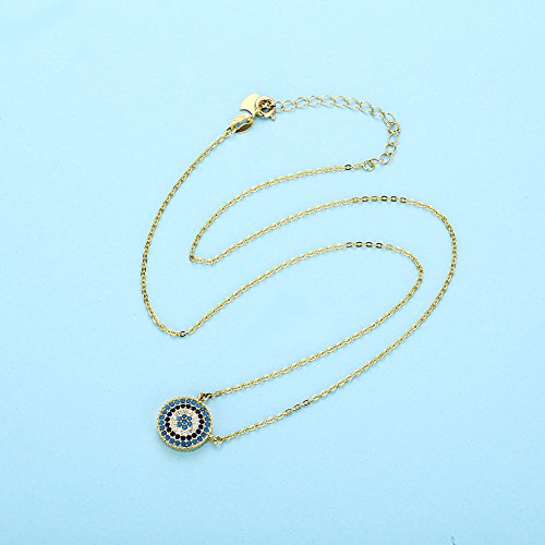 Blue Evil Eye Pendant Necklace in Sterling Silver 925 with Cubic Zirconia CZ and 16"+2" Cable Chain 5