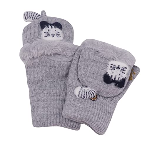 Kids Toddlers Cute Reindeer Fleece Lined Gloves Convertible Flip Top Fingerless Mittens for Boys Girls 7
