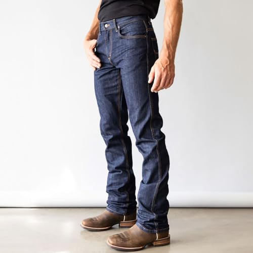 Kimes Ranch Men's Cal Casual Western Cowboy Classic Higher Rise Straight Fit & Straight Boot Leg Blue Denim Jeans 4