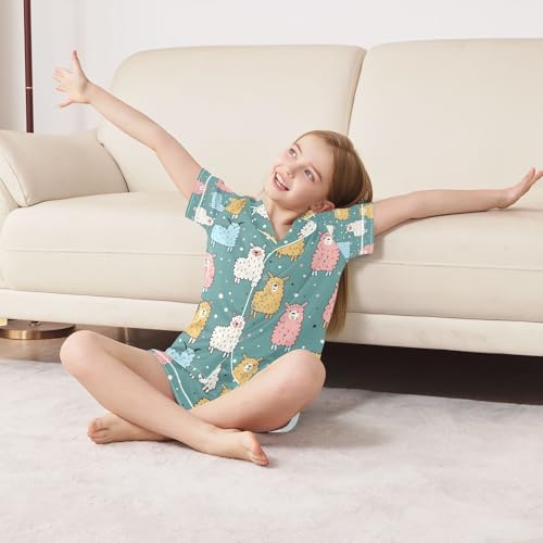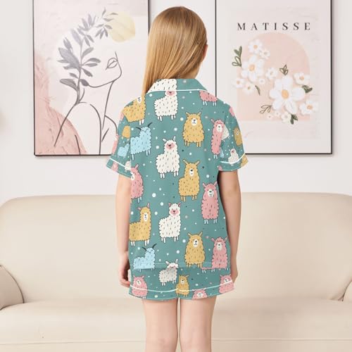 senya Colorful Cute Alpacas A Satin Summer Pajama Sets Silk Short Sleeve Button Down Sleepwear 6