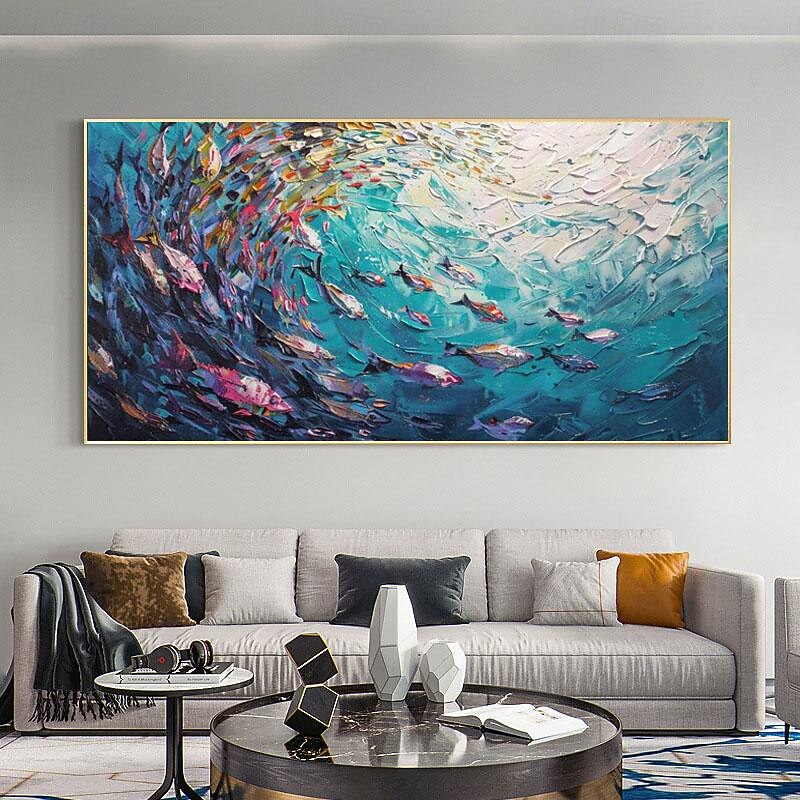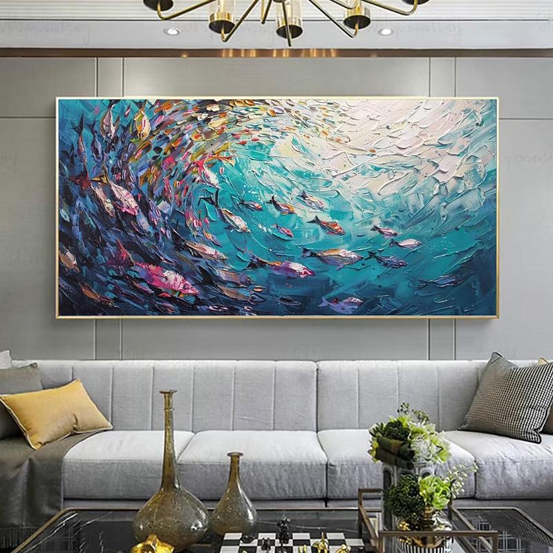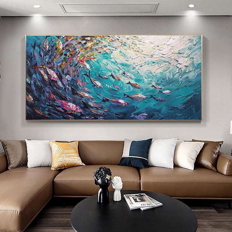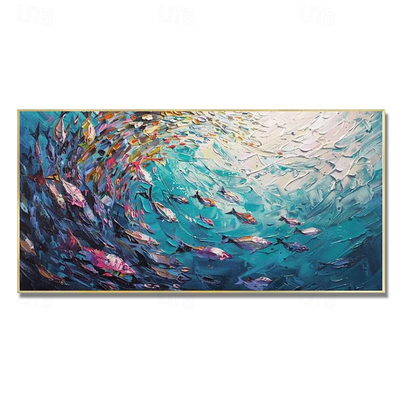 $100.99 - Handmade Original Swimming Fishes Blue Ocean Oil Painting On Canvas Extra Large Wall Art Abstract Fish Art Custom Painting Minimalist Living Room Decor Gift No Frame 2025. Shop for cheap Abstract Paintings online? Buy at lightinthebox.com on sale today!