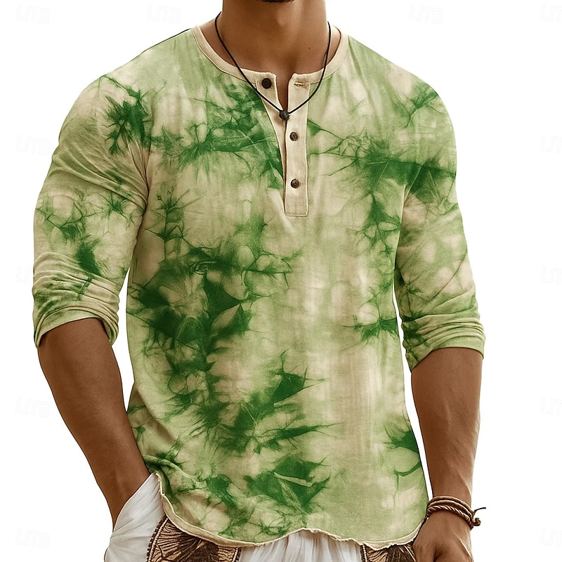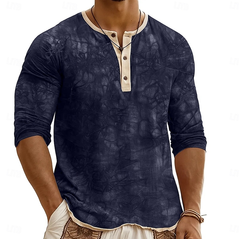 More information about Men's Henley Shirt Tee Henley Top Long Sleeve Tie Dye Fashion Designer Casual Tie Dye Color Block Buttons Henley Outdoor Casual Daily Summer Spring All Seasons Red Navy Blue Blue Henley T-Shirt