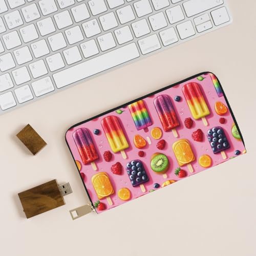 Wallet Women - Fruit Ice Cream Print Leather Wallet Large Capacity Bifold Long Ladies Wallets With Zipper 7