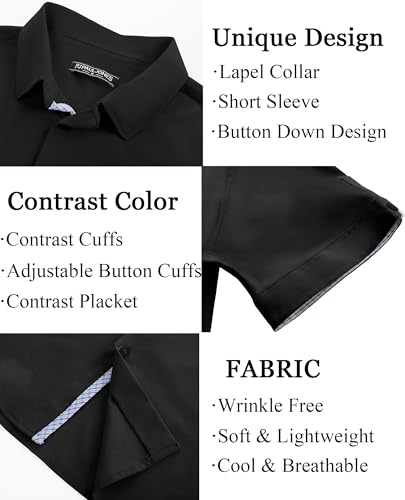 • WRINKLE FREE FABRIC: Mens short sleeve button down shirts are made of premium fabric that is lightweight, durable, breathable, soft and skin-friendly, slightly stretch fabric makes you move body easier, anti-pilling and wrinkle-free material with a clean look, not easily deformed, keeping you looking sharp and polished throughout the day