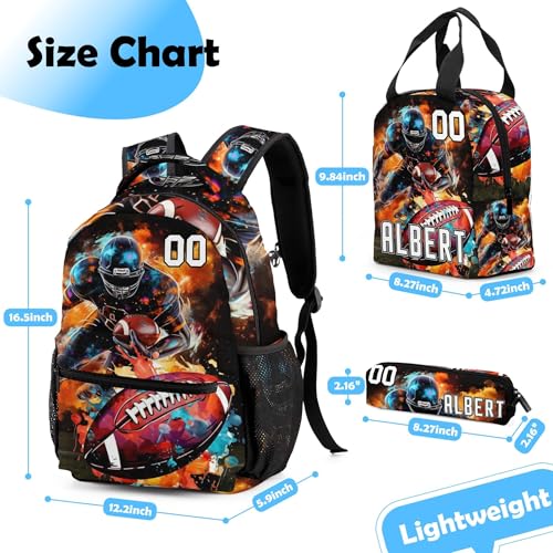 Back to School Personalized Backpacks for Boys Backpack and Lunch Box Set Gifts for Son Football Customized Kids Backpack Custom Backpacks Shoulders with Name Casual Daypack School Bags 3