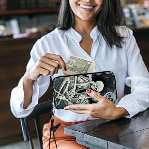 Women's Wallets,Credit Card Holder Money Leather Long Wallet with Wristlet,Large Capacity with Zip-Around Phone Purse for Women Ladies Girls,Couple Skulls 6