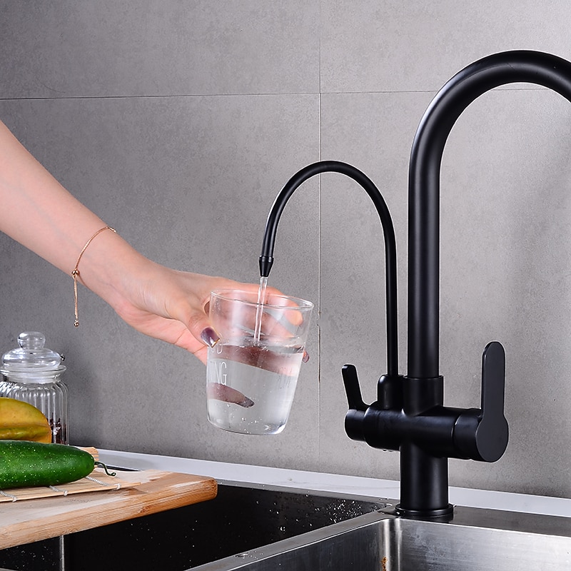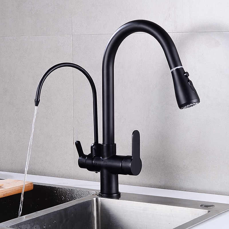 More information about Kitchen faucet - Two Handles One Hole Electroplated / Painted Finishes Pull-out / Pull-down / Tall / High Arc / Purified water Centerset Modern Contemporary Kitchen Taps