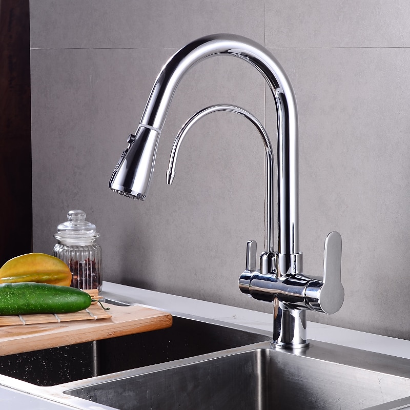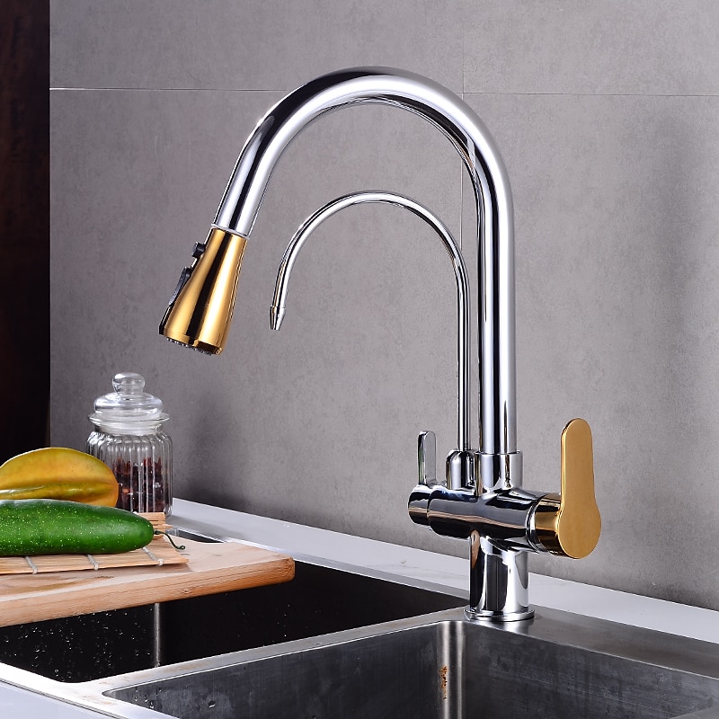 $161.99 - Kitchen faucet - Two Handles One Hole Electroplated / Painted Finishes Pull-out / Pull-down / Tall / High Arc / Purified water Centerset Modern Contemporary Kitchen Taps 2025. Shop for cheap Pullout Spray online? Buy at lightinthebox.com on sale today!