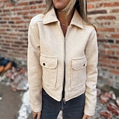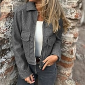 More information about Women's Casual Jacket Warm Comfortable Pocket Fashion Outdoor Plain Going out Weekend Zipper Regular Lapel Regular Fit Long Sleeve Outerwear Apricot Gray Fall Winter
