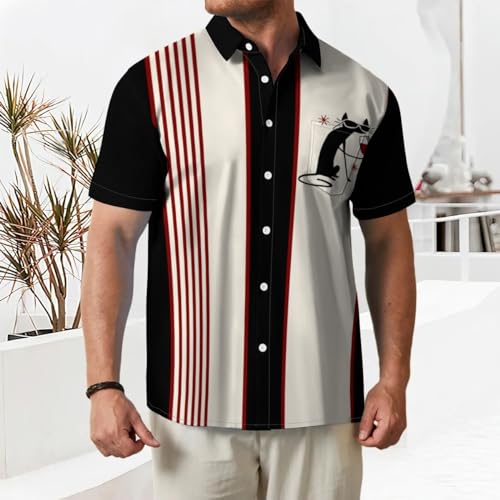 • Various styles: Men's bowling shirt comes in striped, plaid, vintage, and holiday print styles such as Halloween, Thanksgiving, and Christmas. Pair it with jeans, strap shorts, or wooden shorts to create a relaxed and casual set that showcases the spirit of summer.