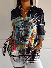 More information about Women's Shirt Floral Animal Active Daily Stylish Long Sleeve Shirt Collar Regular Tops Daily Holiday Buttons Print Black Gray Spring Fall
