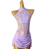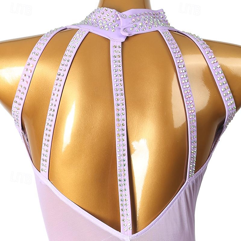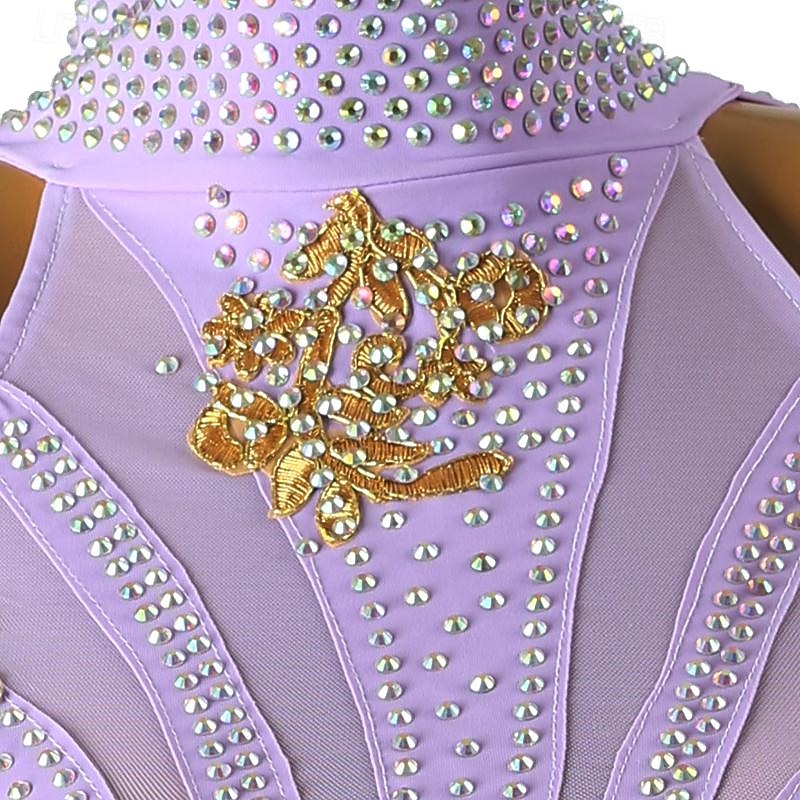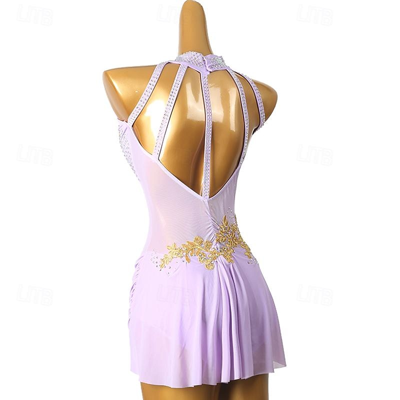 More information about Figure Skating Dress Women's Girls' Ice Skating Dress Light Purple Patchwork Open Back Mesh Spandex High Elasticity Training Practice Professional Skating Wear Classic Crystal / Rhinestone Sleeveless