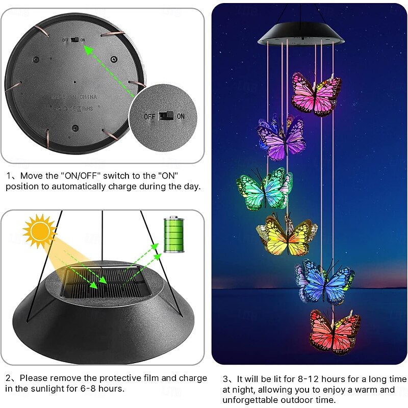 1 Pc outdoor solar simulation butterfly wind chime light gradient color light courtyard garden tree yard balcony camping decoration light 8