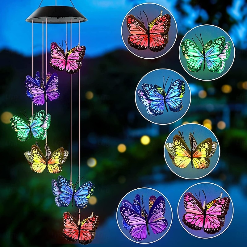 1 Pc outdoor solar simulation butterfly wind chime light gradient color light courtyard garden tree yard balcony camping decoration light 5