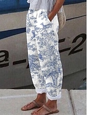 More information about Women's Cotton Linen Pants Baggy Pants Linen Like Active Vintage Fashion Full Length High Waist Floral Graphic Animal Printing Thermal Warm Breathable Soft Micro-elastic Outdoor Daily Silver
