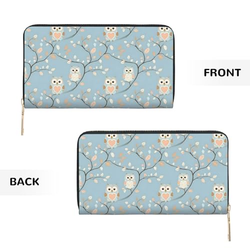 Leather Thin Slim Wallets for Women & Men - Cute Owl Heart Print Card Wallet Holder with Zipper 1