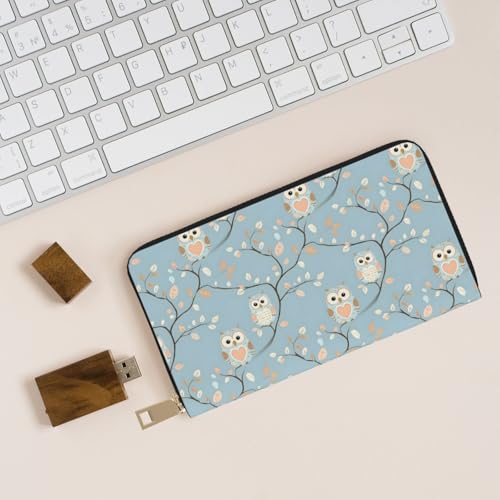Leather Thin Slim Wallets for Women & Men - Cute Owl Heart Print Card Wallet Holder with Zipper 7