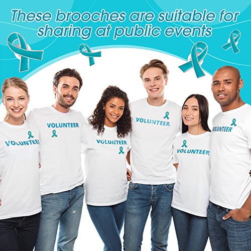 Sasylvia 100 Pcs Teal Ribbon Lapel Pins Bulk Ovarian Cervical Cancer Sexual Assault Awareness Products Scleroderma PTSD Awareness Thyroid Cancer Jewelry Metal Pin Badge Brooch 4