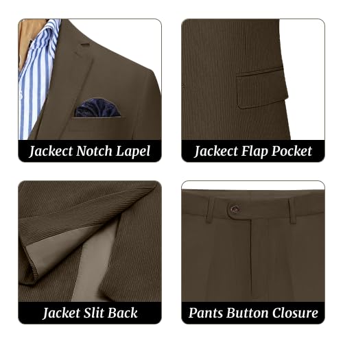 • 【Design】: Men corduroy suit jacket: two button clousure, 1 chest pocket, 2 patch pockets, notched lapel. Men corduroy vest: V neck,five buttons.Men corduroy suit pants: double safety buckle, 2 slant pockets, 2 buttock pocket,adjustable waistband.