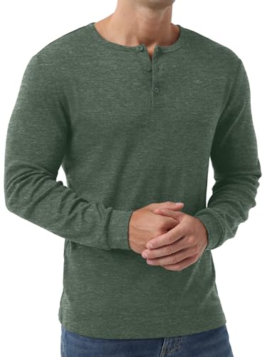• Classic Henley Tee:Solid color long sleeve henley with a 3 button placket. Made with sturdy stitching for a clean, casual look. A timeless wardrobe essential.