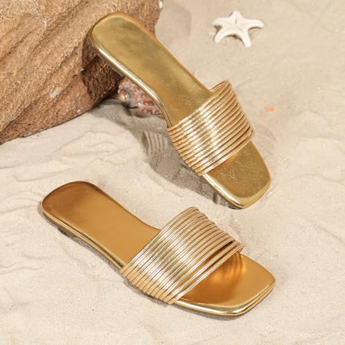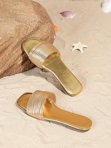 Verdusa Women's Summer Beach Sandals Square Toe Strappy Flat Sandals Slip On Metallic Sandal 5