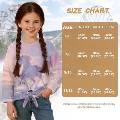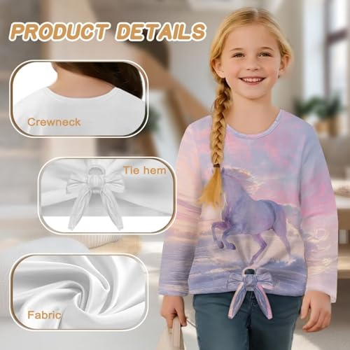 Crewneck Shirts for Girls Size 5-12 Long Sleeve Graphic Tops Tie Front 7