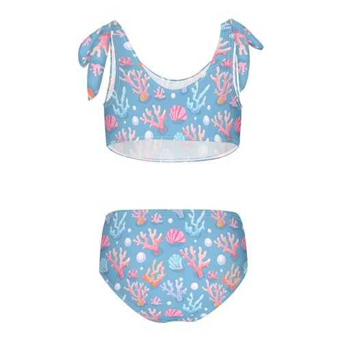 Pearl Coral Girls Two Piece Tankini Swimsuits Summer Bathing Suit Beach Swimwear Set 1