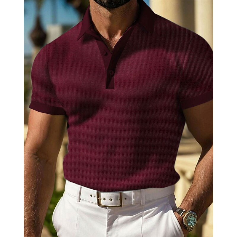 More information about Men's Waffle Polo Shirts Golf Shirt Work Casual Lapel Short Sleeve Basic Modern Plain Buttons Summer Spring Regular Fit Black White Yellow Red Light Grey Light Blue Waffle Polo Shirts