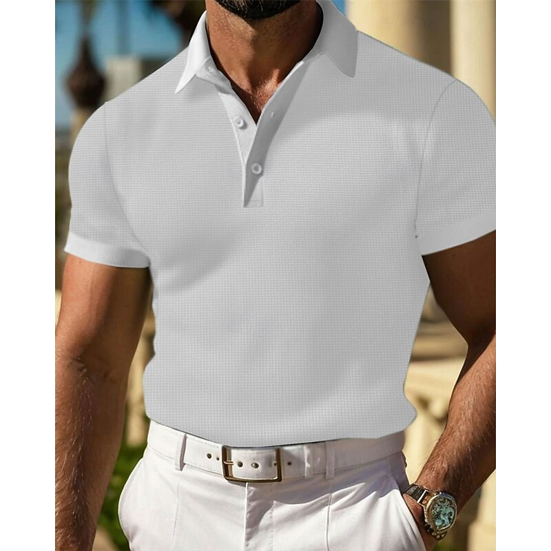 HOT ! Men's Waffle Polo Shirts Golf Shirt Work Casual Lapel Short Sleeve Basic Modern Plain Buttons Summer Spring Regular Fit Black White Yellow Red Light Grey Light Blue Waffle Polo Shirts