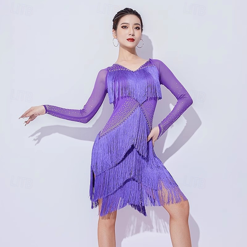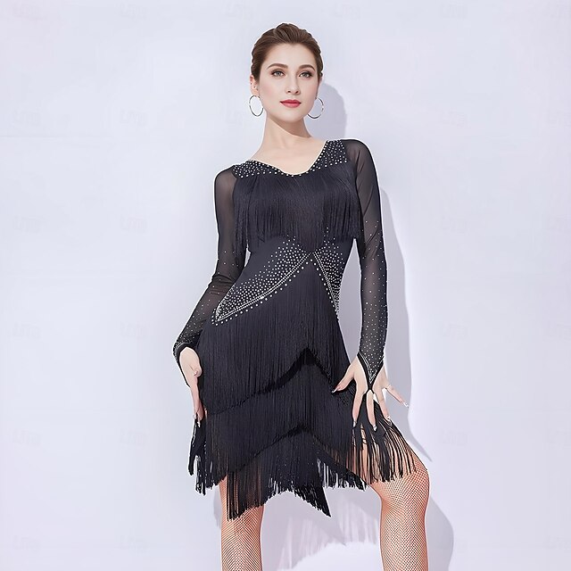 $168.99 - Latin Salsa Dance Dress Rhinestone Tassel Splicing Women's Performance Training Long Sleeve Mesh Milk Fiber 2025. Shop for cheap Competition Dress online? Buy at lightinthebox.com on sale today!