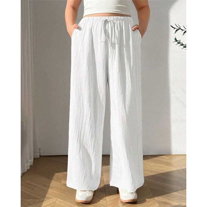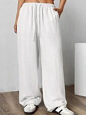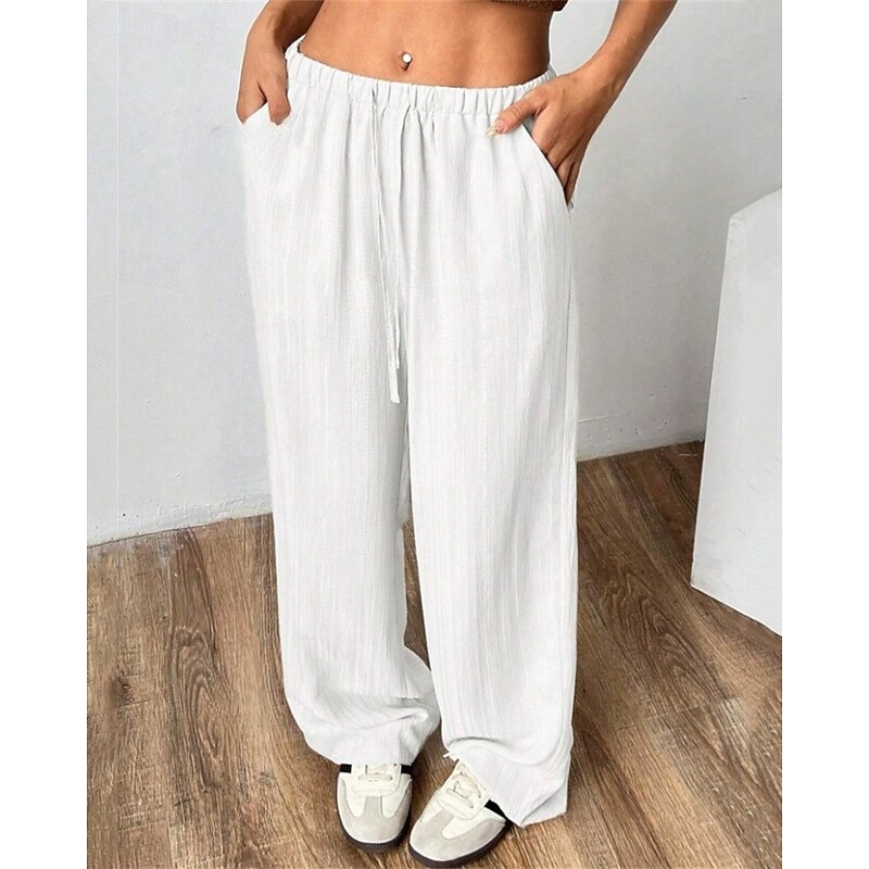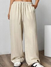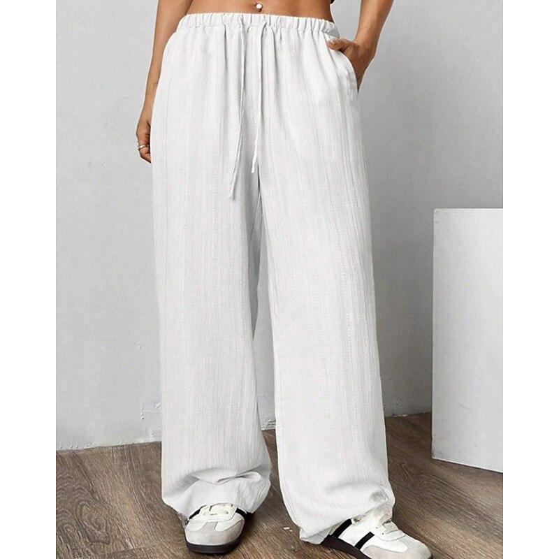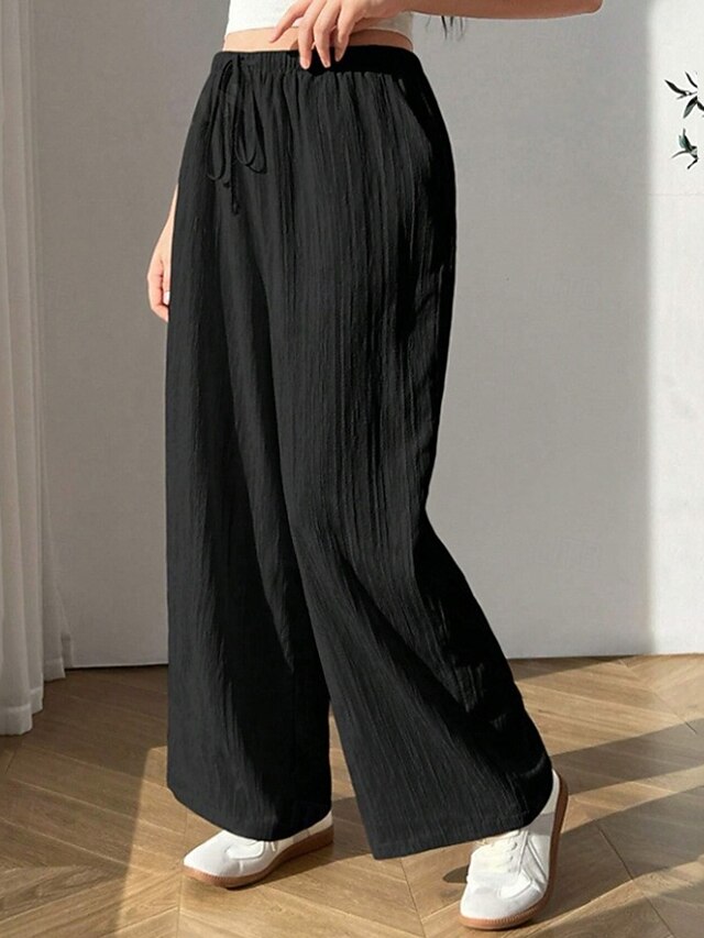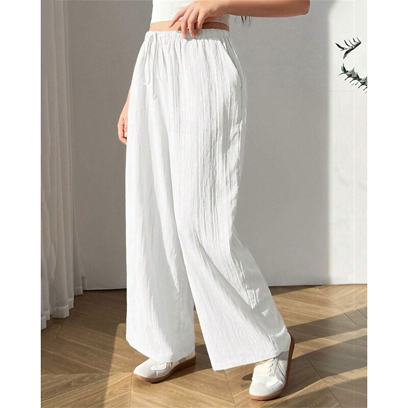 More information about Women's Wide Leg Pants Trousers Palazzo Pants Fashion Streetwear Full Length High Waist Plain Elastic Waist Drawstring Breathability Comfortable Street Daily Wear Going out Black White Beige Summer