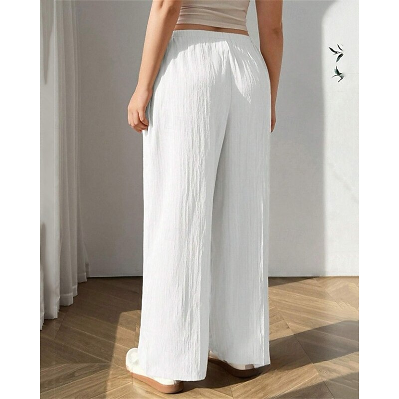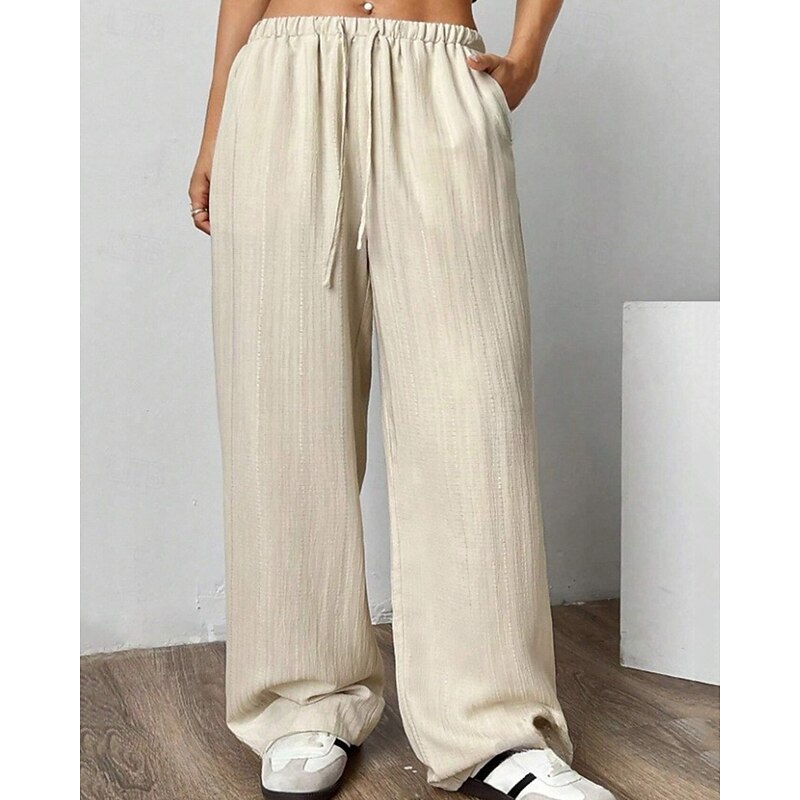 HOT ! Women's Wide Leg Pants Trousers Palazzo Pants Fashion Streetwear Full Length High Waist Plain Elastic Waist Drawstring Breathability Comfortable Street Daily Wear Going out Black White Beige Summer