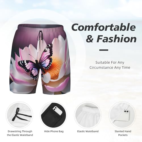HOT ! Pink Butterfly Men's Soft Double Swim Shorts, Lounge Swiming Shorts Pants Breathable Summer