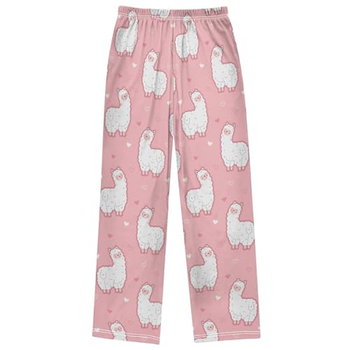 Boy's Pj Pants White Fluffy Alpaca Heart Lounge Bottoms Elastic Waist Kids Joggers with Pockets Size 6-14 7