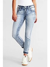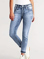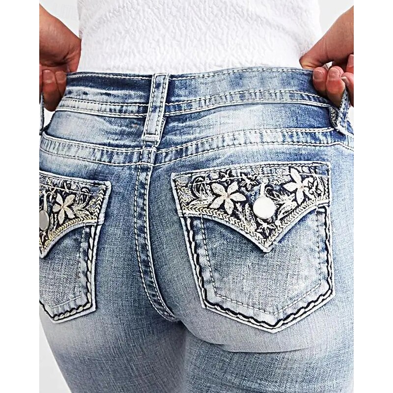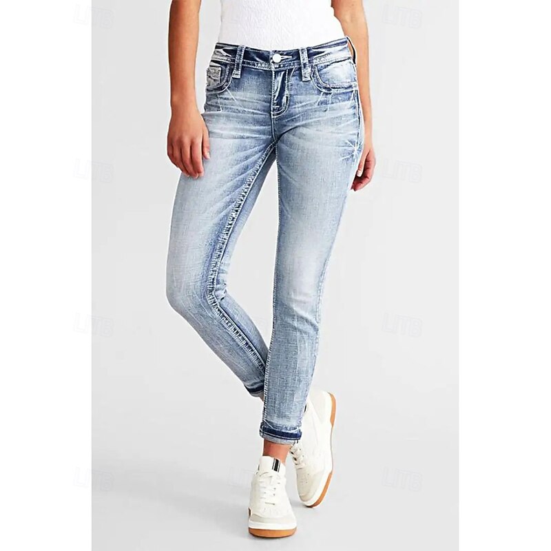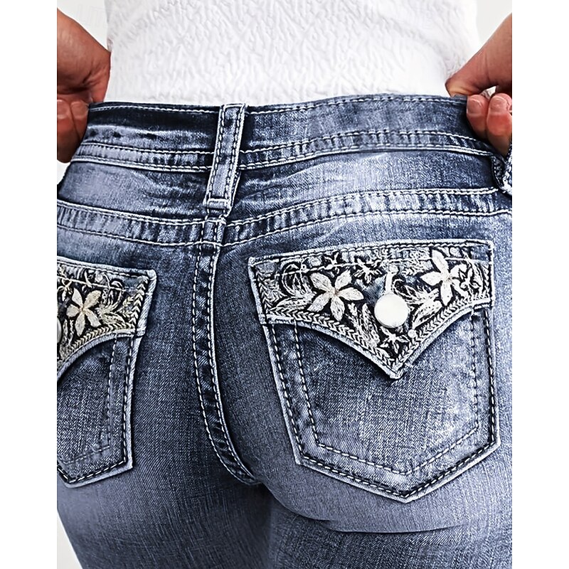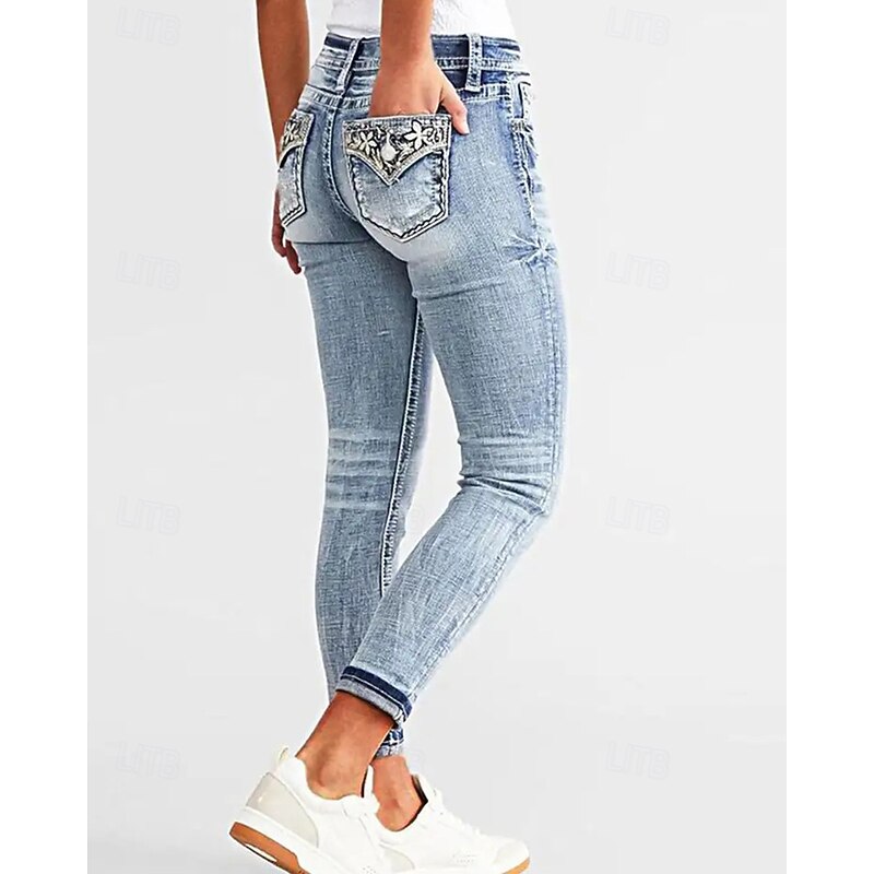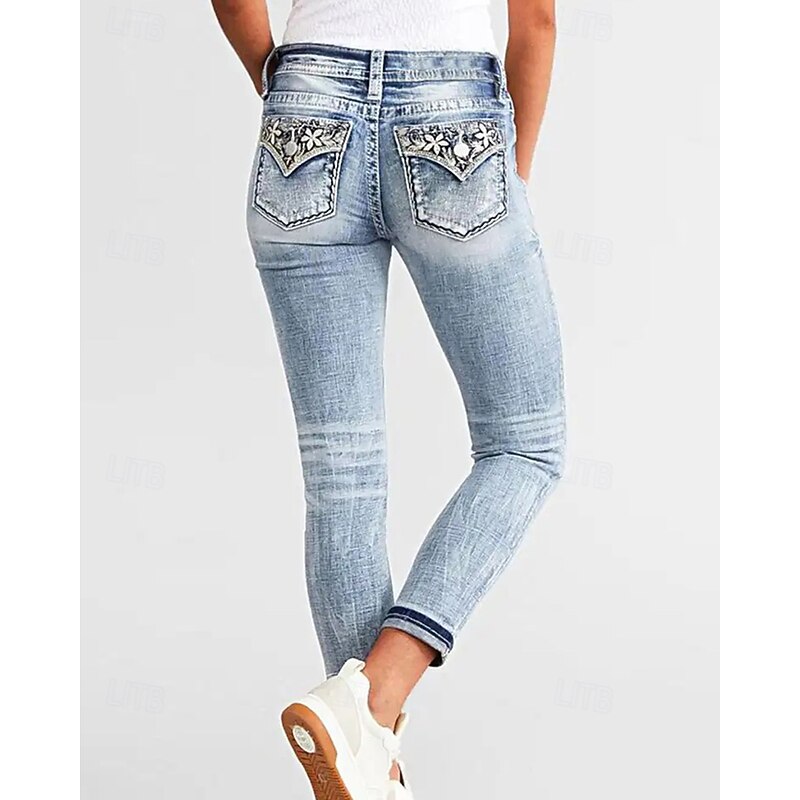 More information about Women's Jeans Chinos Vacation Vintage Streetwear Full Length Medium Waist Plain Embroidered Pocket Elastic Waist Comfortable Micro-elastic Vacation Street Daily Dark Blue Light Blue Fall Winter Slim
